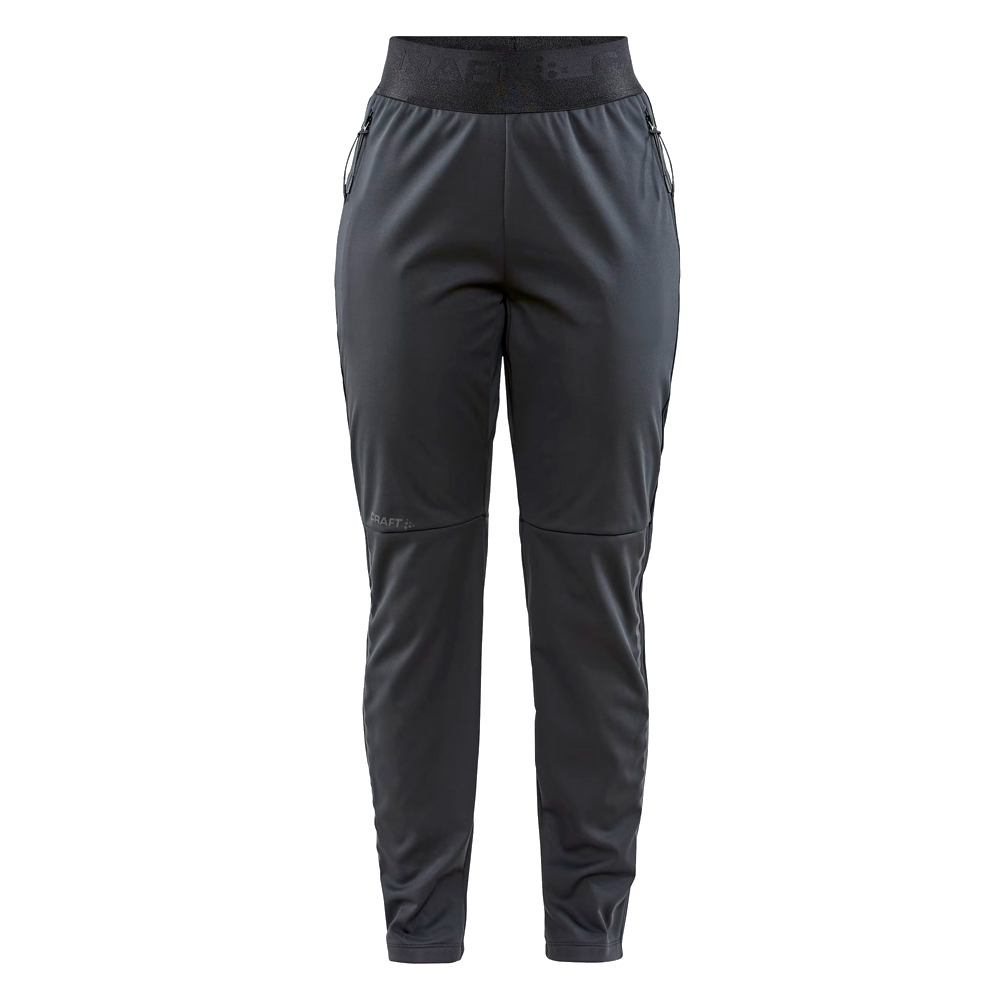 Craft pant Adv Essence Wind black voor dames is gevoerd met zachte fleece en heeft aan de voorzijde wind- en waterdichte stof.