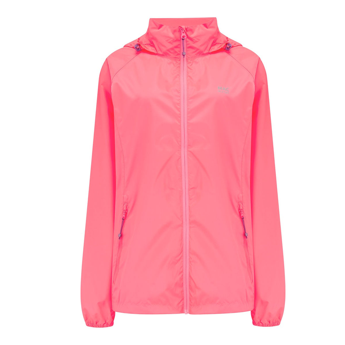 Een waterdicht hardloopjack in mooie opvallenden neon roze kleurstelling.