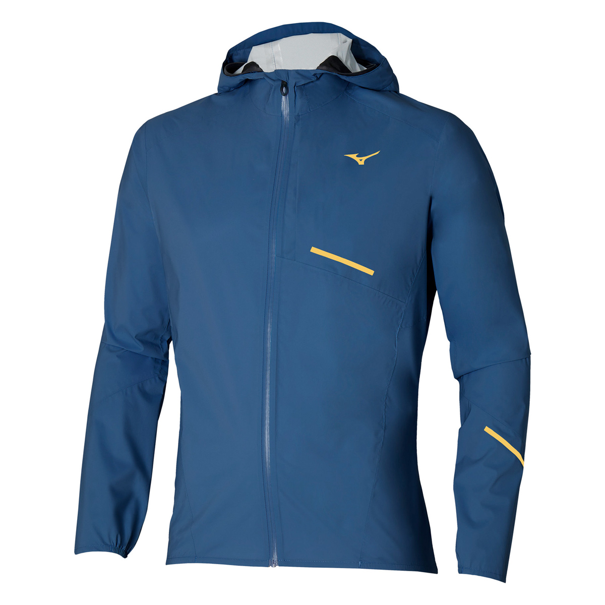 Mizuno jack Trail Waterproof 20K ER estate blue heren is een top hoogwaardig functionele wind- en 100% waterdichte hardloopjas die onder alle weersomstandigheden blijft ademen en presteren. (20K waterproof/25K ademheid). Elastiek bij de polsen en middel houden het water buiten. Ideaal voor de extreme trail events en hardlopen in alle soorten weer.