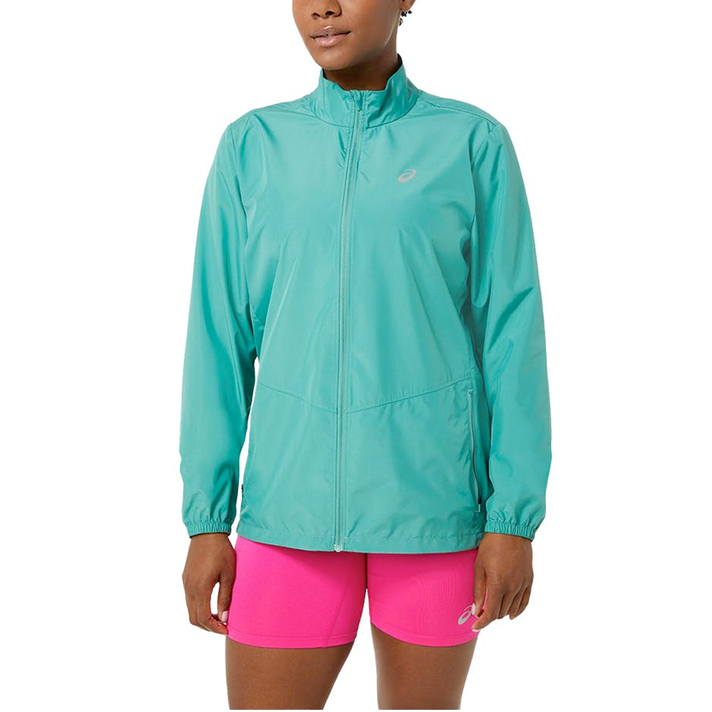 Asics jack Core sage dames is een lichtgewicht en waterafstotend duurzaam hardloopjack. Dit ademende jack is gemaakt van 100% gerecycled materiaal en heeft 2 zijzakken met rits.