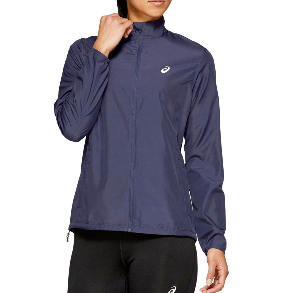 Dit Asics jack Silver peacoat dames houdt de wind tegen en is zo licht dat je het gevoel hebt bijna niks aan te hebben. Voorzien van twee zakken met rits.