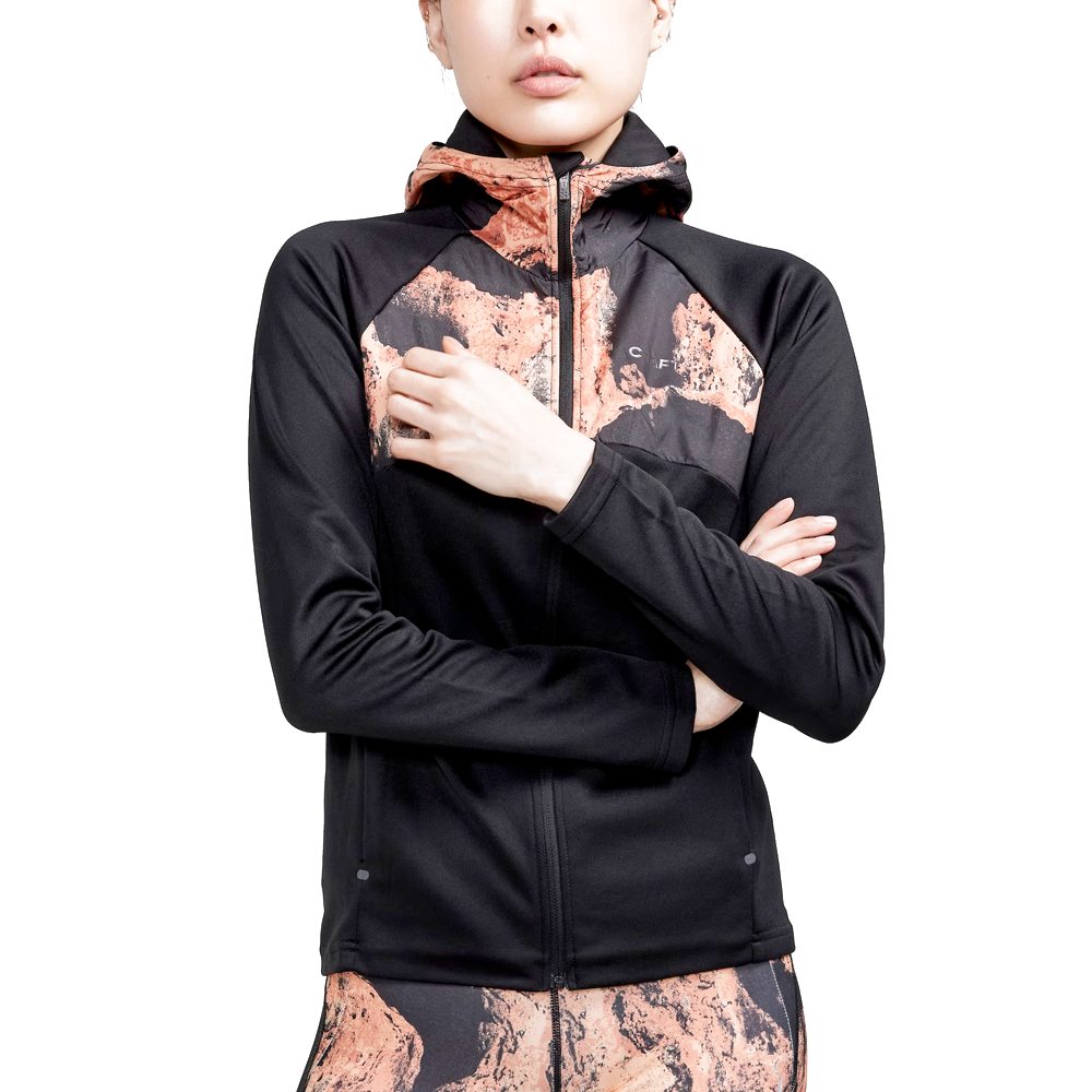 Craft jack Adv Essence Jersey Hood black multicolour is gemaakt van een zachte, licht gevoerde stof die je beschermt tegen de kou. Dit jack voelt als een vest maar heeft de functie van een hardloopjas door de winddichte voorzijde.