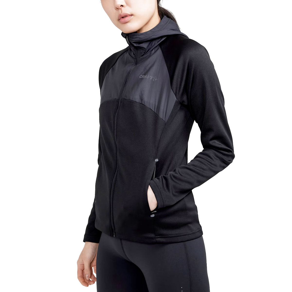Craft jack Adv Essence Jersey Hood black is gemaakt van een zachte, licht gevoerde stof die je beschermt tegen de kou. Dit sportjasje voelt als een vest maar heeft de extra functie van een dames hardloopjasje door de winddichte voorzijde.