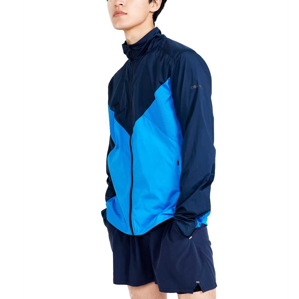 Dit Craft jack jack Adv Essence Wind blaze sharek voor heren is een winddicht en waterafstotend hardloopjack met een casual look.