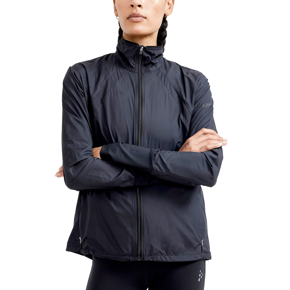 In dit hardloopjack van Craft zitten duimsgaten door de polsbanden en het heeft 2 steekzakken met rits.