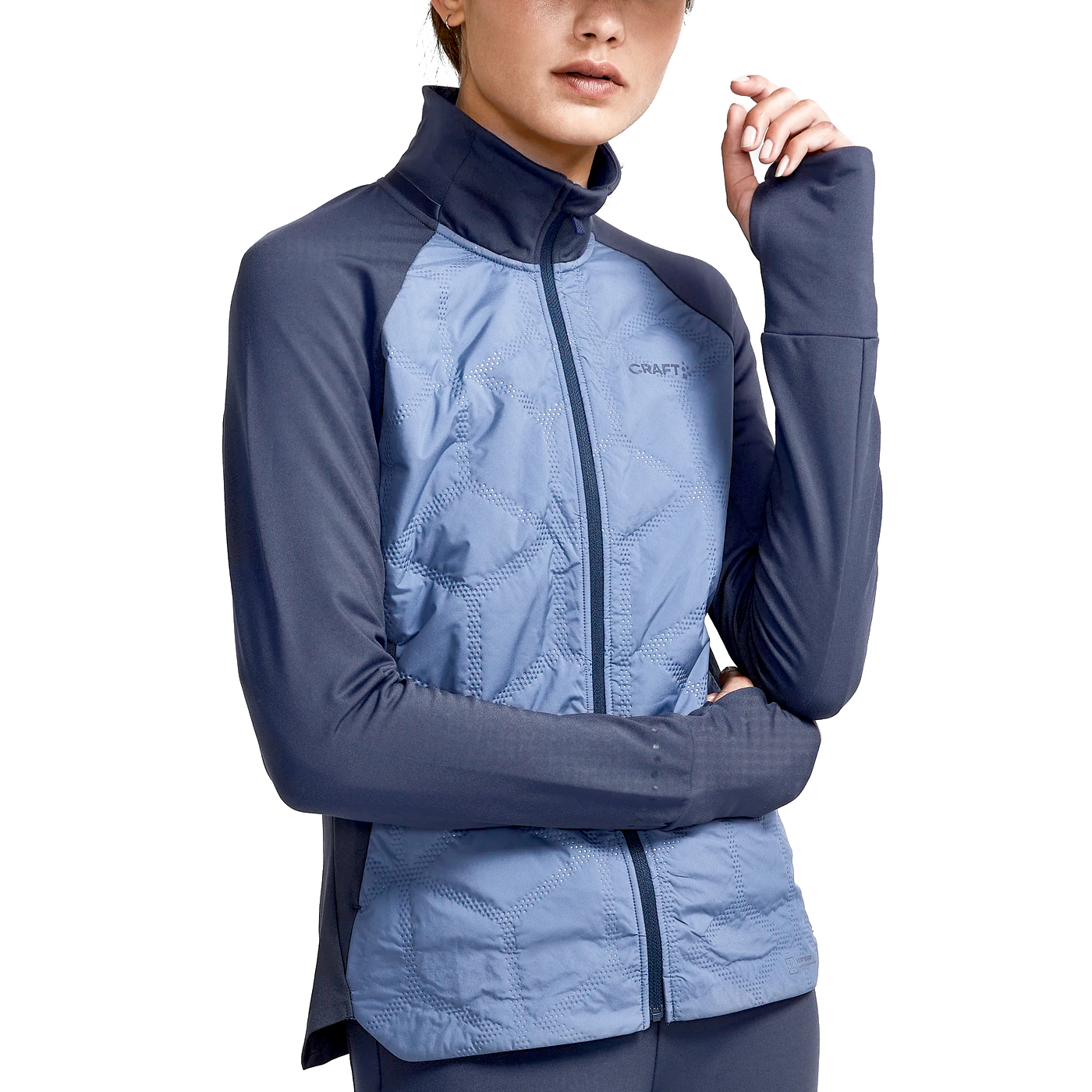 Dit Craft jack Adv Subz 2 saphire blues voor dames is een licht gevoerde jas, met een winddichte voorkant om je warm te houden in koude weersomstandigheden. Door de duimsgaten in de mouwen worden koude handen voorkomen. In deze hardloopjas kun je spullen veilig opbergen in de 2 steekzakken met rits.