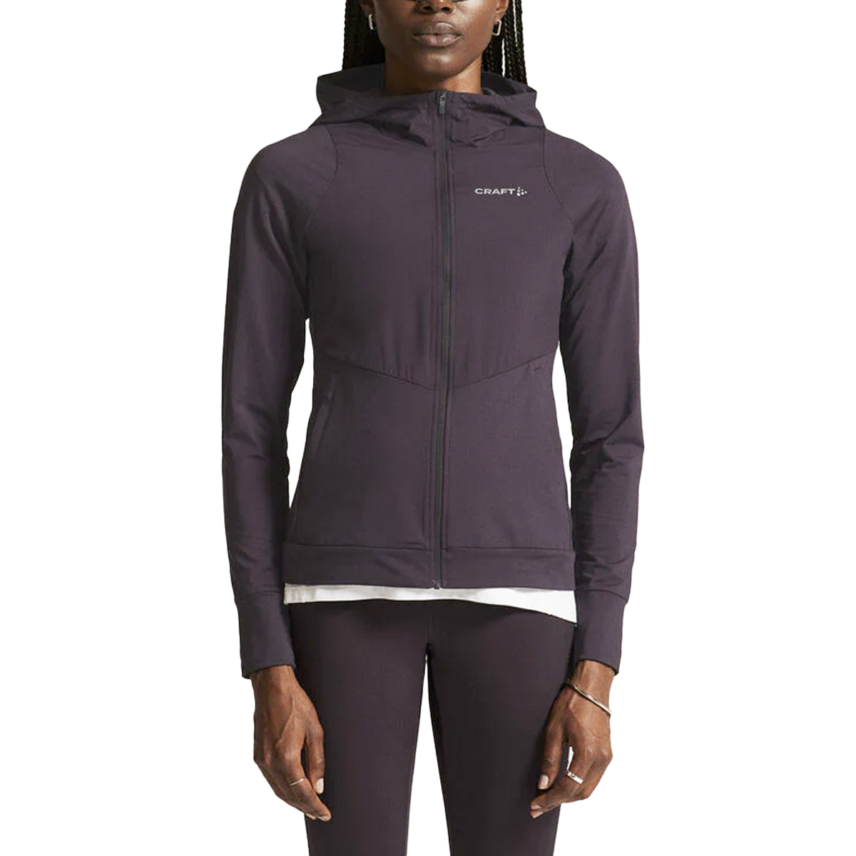 Craft jack Adv Essence Jersey Hood dk plum is gemaakt van een zachte, licht gevoerde stof die je beschermt tegen de kou. Dit sportjasje voelt als een vest maar heeft de extra functie van een heren hardloopjasje door de winddichte voorzijde.
