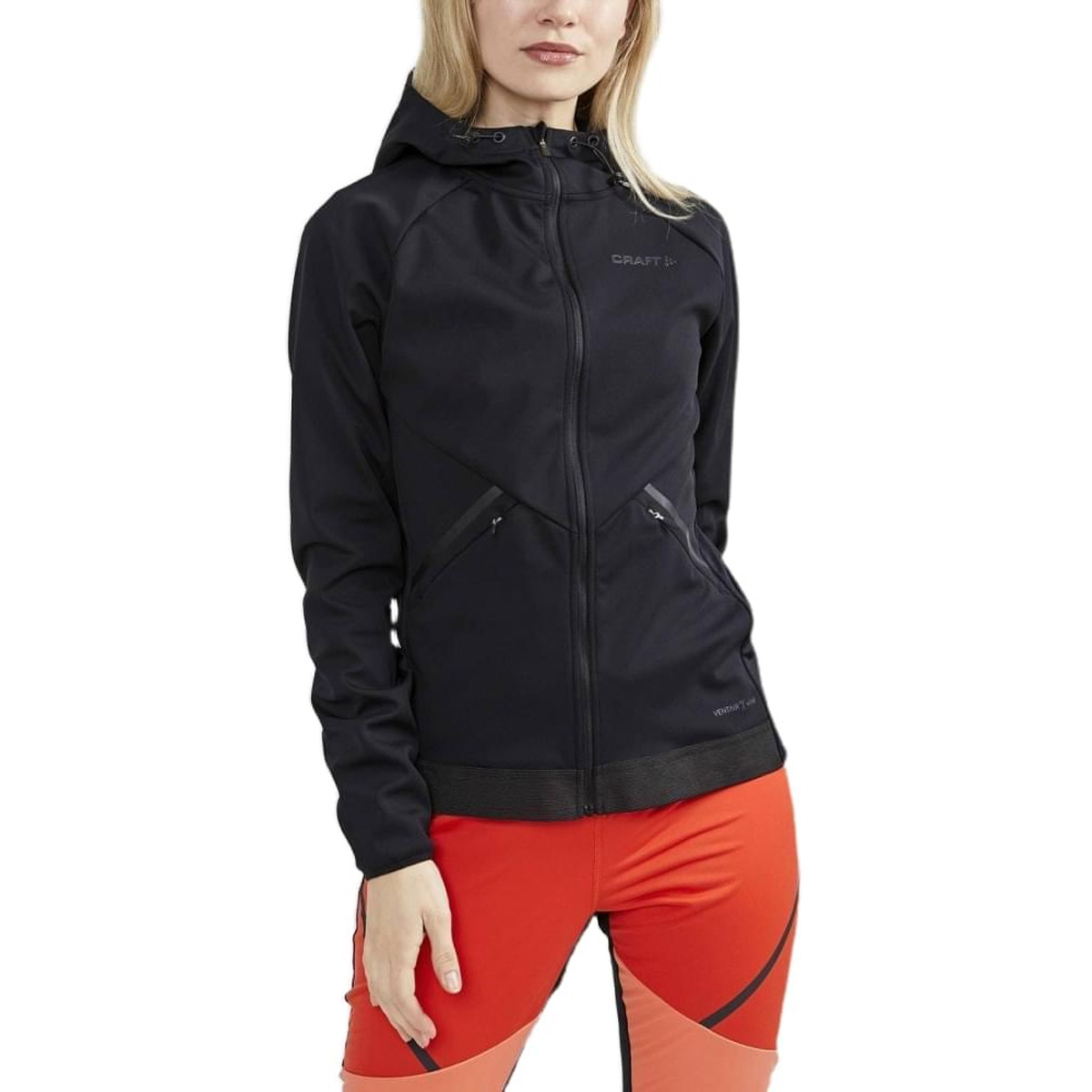 Dit Craft jack hoodie Glide black voor dames is gemaakt van een 3-laags wind- en waterdichte VENTAIR-stof voor training in koudere omstandigheden.