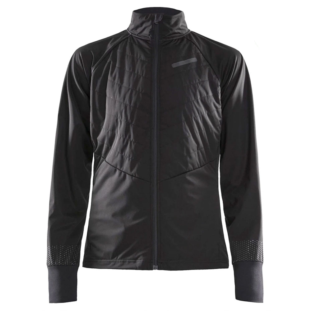 Het jack is warm en stretchy met een winddicht voorpaneel gemaakt van 50% recycled polyester. Terwijl de rug is gemaakt van zelfs 100% recycled and brushed polyester fleece zodat je lichaam blijft ademen tijdens intensieve winterse workouts.