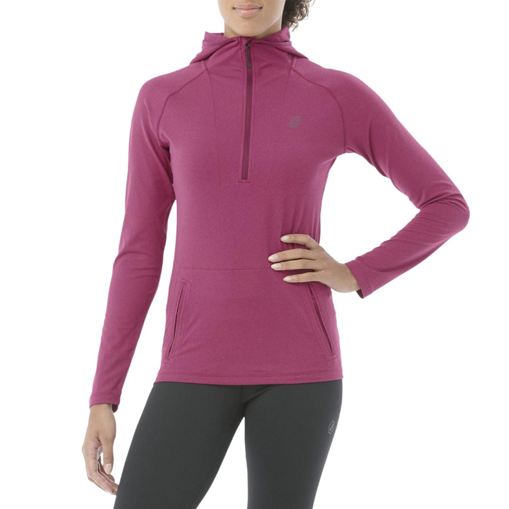 Asics LS Hoodie prune heather voor dames is comfortabel in het dragen en gemaakt van een ademende jersey. De stof voelt aan als katoen maar is volledig functioneel. Platte naden voorkomen schuring. De steekzakken en vlotte capuchon geven deze hardlooptrui een athleisure look.