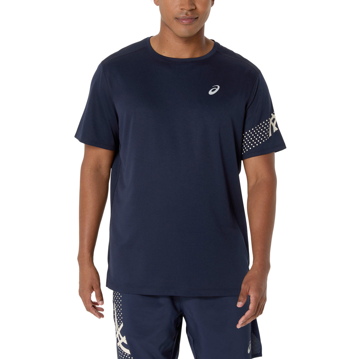 Asics shirt korte mouw Icon (Midnight) heren is gemaakt van lichtgewicht stretchy stof en van zeer ademend gerecycled materiaal. Het shirt houdt je droog en koel tijdens het sporten