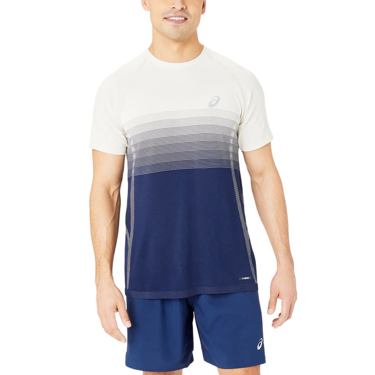Asics hardloopshirt Seamless birch/blue expanse heren met zijn luxe pasvorm is een volledig naadloos hardloopshirt. De ACTIBREEZE™ technologie in dit top level sportshirt zorgt voor optimale ventilatie die je droogt houdt onder alle omstandigheden.