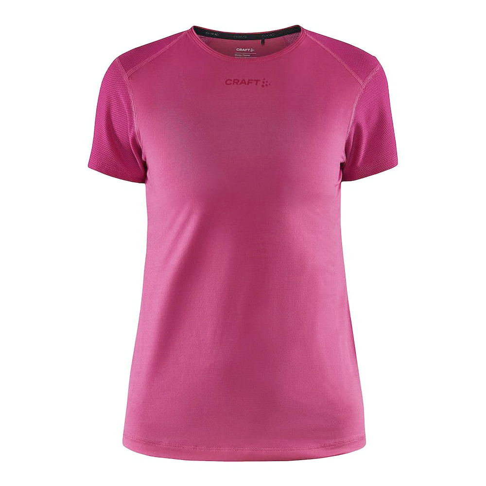 Craft shirt korte mouw Adv Essence roxo voor dames heeft een getailleerde pasvorm voor optimale bewegingsvrijheid. Dit shirt is ademend en houdt je cool tijdens de warme dagen.