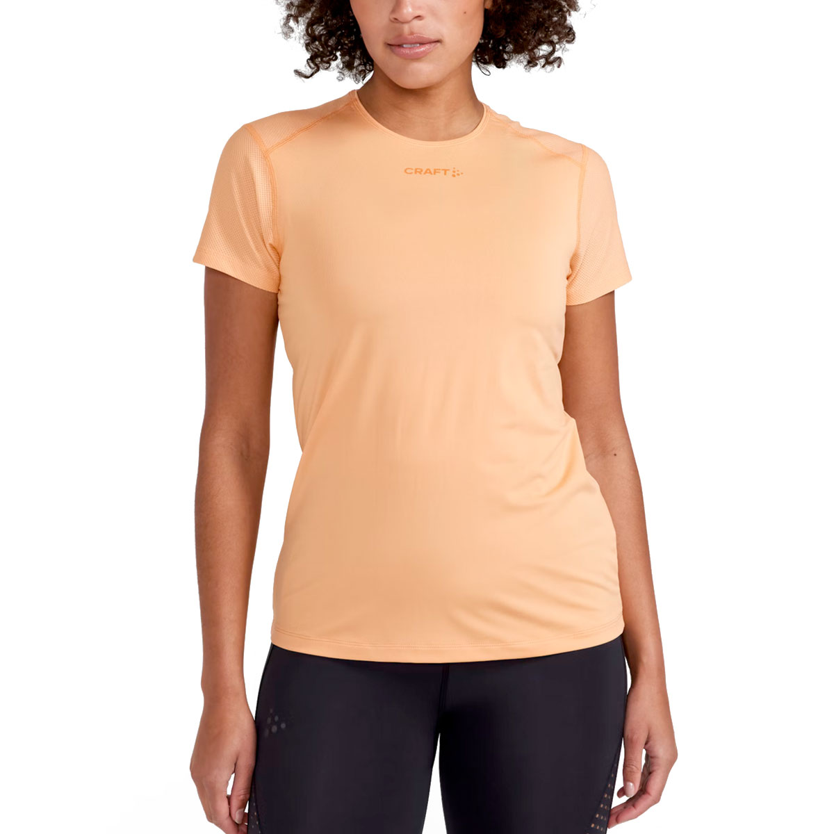 Craft shirt korte mouw Adv Essence peach voor dames heeft een getailleerde pasvorm voor optimale bewegingsvrijheid. Dit shirt is ademend en houdt je cool tijdens de warme dagen.