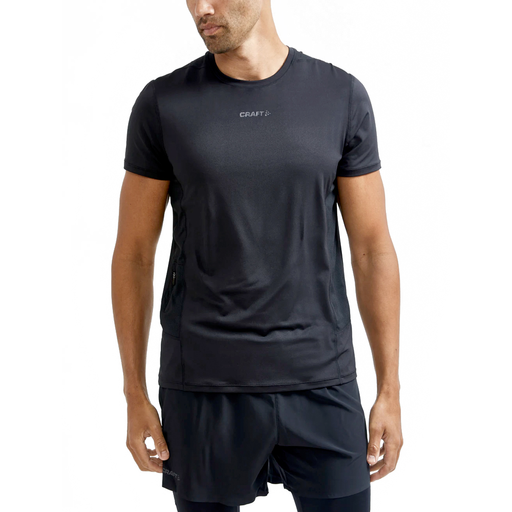 Dit Craft shirt korte mouw Adv Essence black voor heren heeft een gevormd, ergonomisch ontwerp voor een optimale pasvorm, bewegingsvrijheid en comfort. Dit shirt is ademend en houdt je cool tijdens de warme dagen en heeft een sleutelzakje met rits aan de zijkant.
