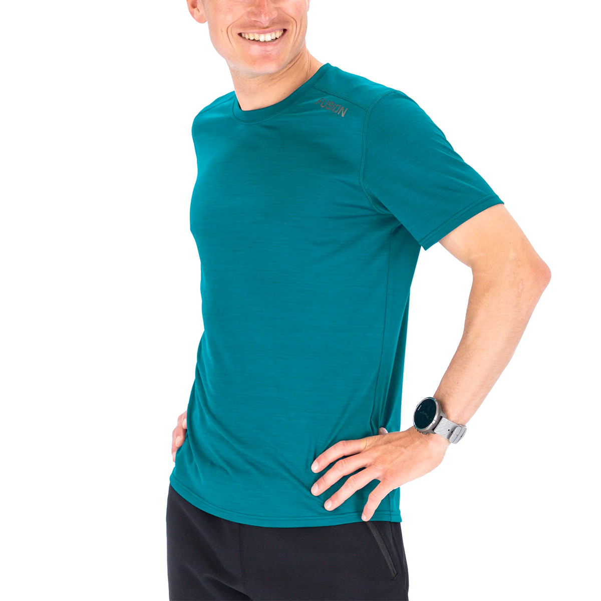 Dit Fusion shirt korte mouw C3 turquoise voor heren is gemaakt van een zachte stof, waardoor je lang comfortabel blijft bij elke weersomstandigheid. Het sportshirt van Fusion is voorzien van een klein reflecterend detail op de achterkant.