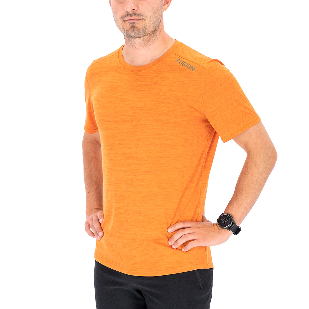 Dit Fusion shirt korte mouw C3 orange voor heren is gemaakt van een zachte stof, waardoor je lang comfortabel blijft bij elke weersomstandigheid. Het sportshirt van Fusion is voorzien van een klein reflecterend detail op de achterkant.