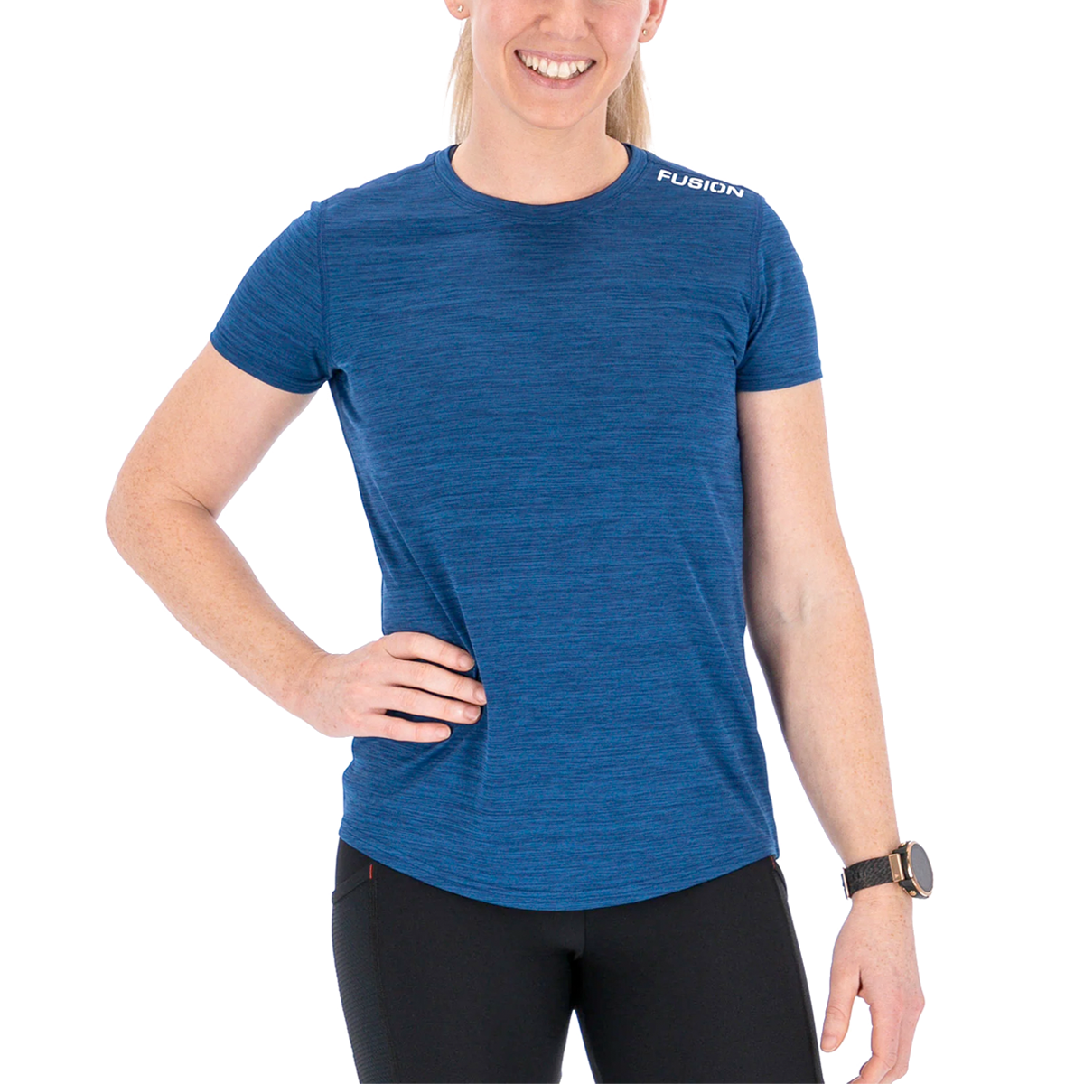 Dit Fusion shirt korte mouw C3 night blue voor dames is gemaakt van een zachte stof, waardoor je lang comfortabel blijft bij elke weersomstandigheid. Het sportshirt van Fusion is voorzien van een klein reflecterend detail op de achterkant.