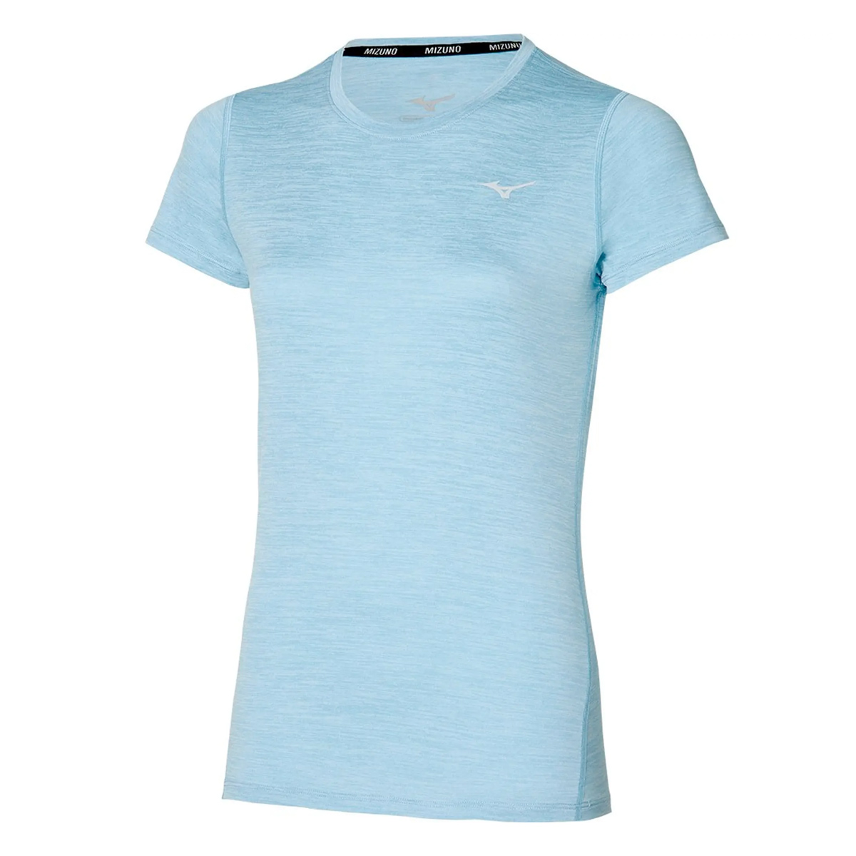 Dit Mizuno shirt korte mouw Impulse Core glacier lake voor dames is gemaakt van zachte stof en zorgt hierdoor voor veel comfort. Het shirt is op de voorkant voorzien van reflectie.