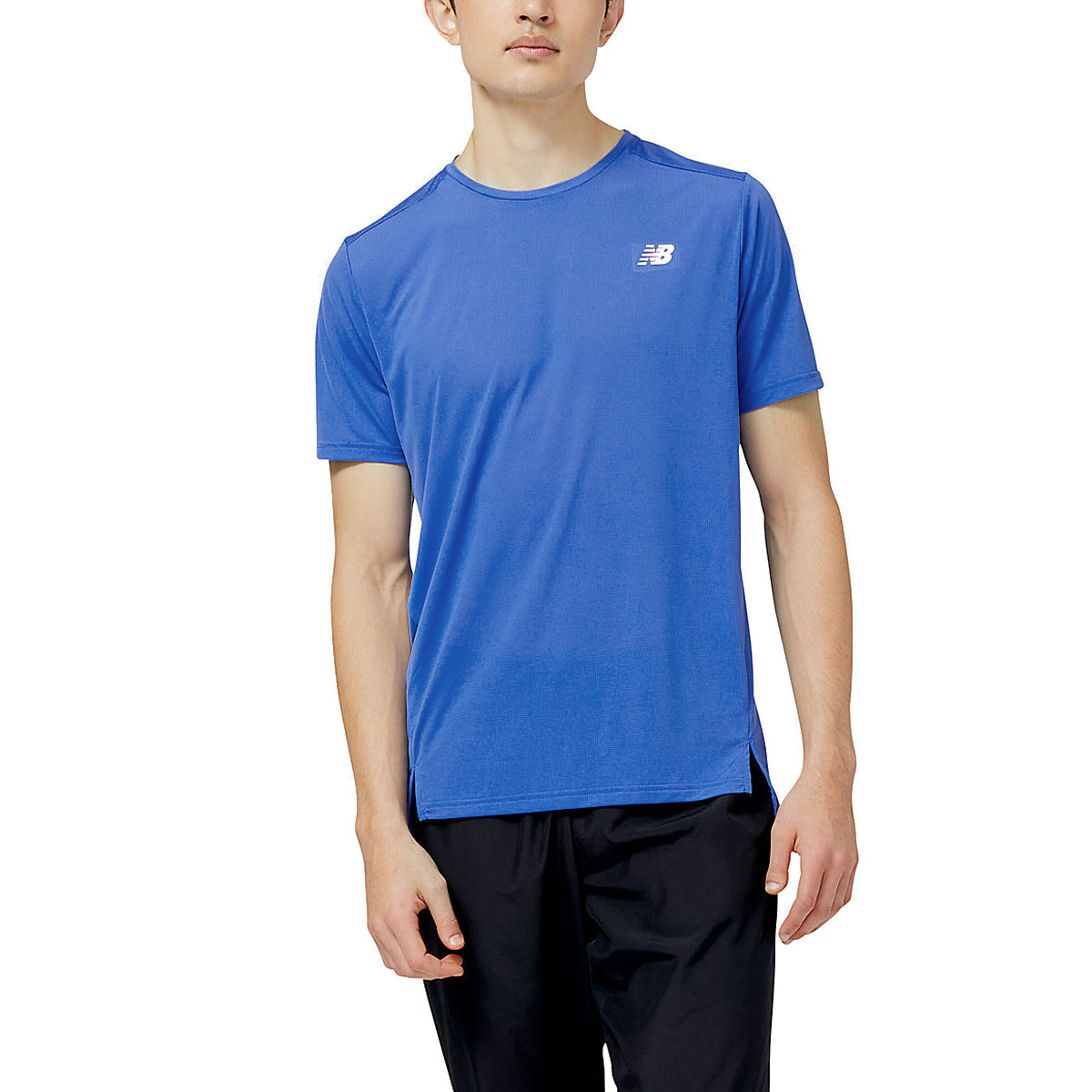 Dit New Balance shirt korte mouw Accelerate marine blue voor heren houdt je droog en comfortabel tijdens je training. New Balance hardloopshirt is gemaakt van een lichtgewicht en ademende gerecyclede polyester stof.