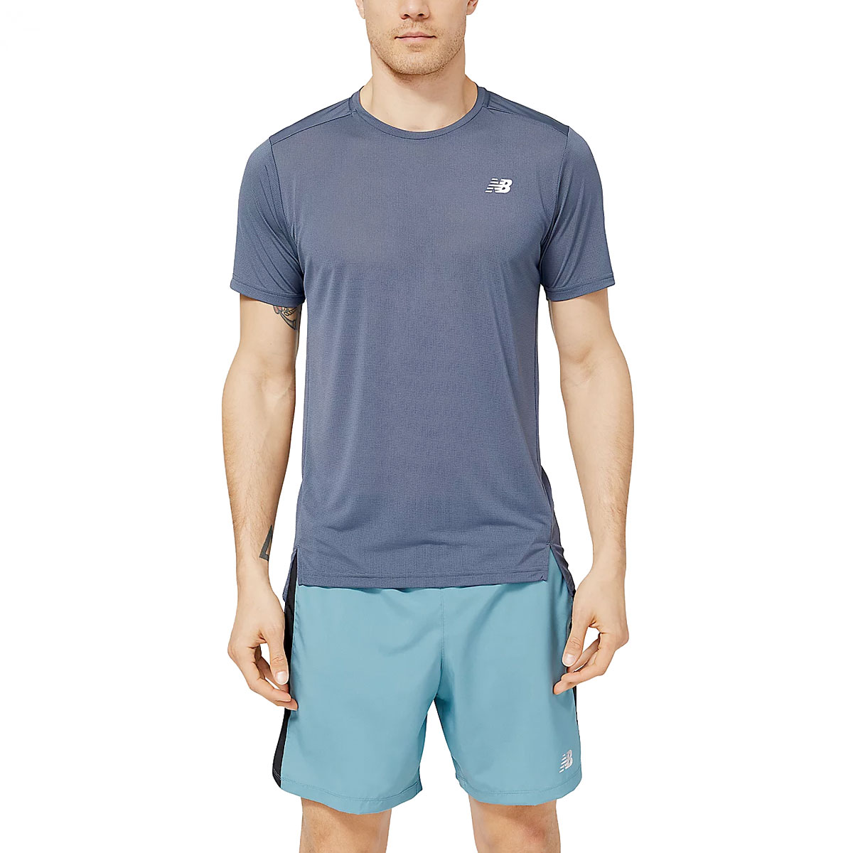 Dit New Balance shirt korte mouw Accelerate grey voor heren houdt je droog en comfortabel tijdens je training. New Balance hardloopshirt is gemaakt van een lichtgewicht en ademende gerecyclede polyester stof.