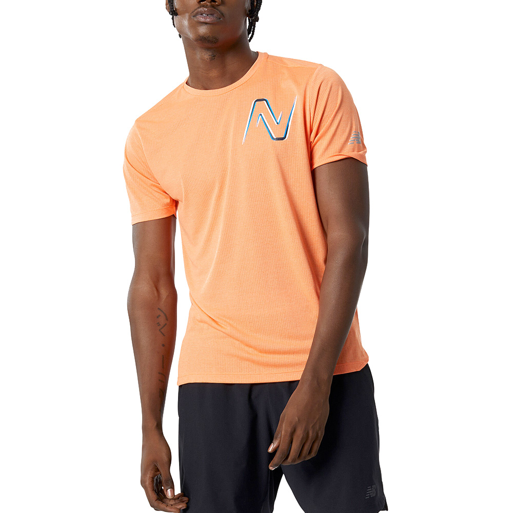 Deze New Balance shirt korte mouw Graphic Impact fluor oranje voor heren is voorzien van onze sneldrogende en ademende NB ICEx technologie die je koel houdt tijdens het sporten.