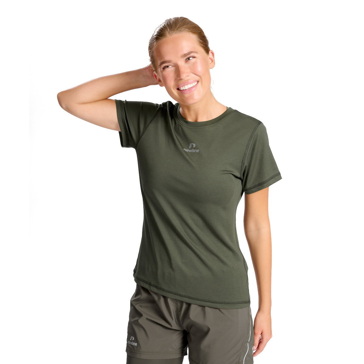 Newline shirt korte mouw nwlBEAT Poly green voor dames is een lichte en comfortabele sporttop die gemak van beweging en stijl biedt. Dit hardloopshirt is vervaardigd uit mesh jersey-stof.