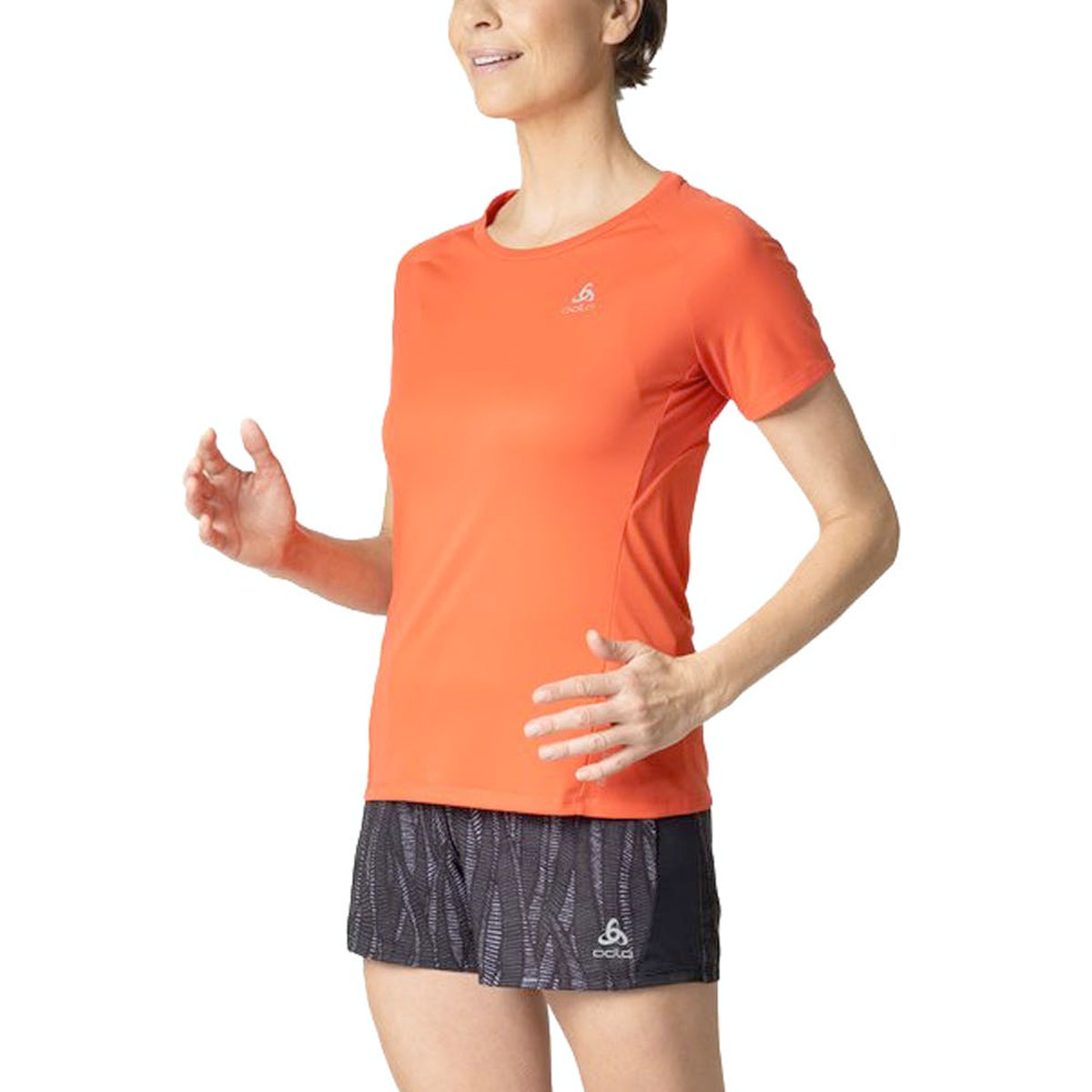 Eco friendly Odlo shirt Chill-Tec cayenne voor dames is ontwikkeld met actieve Chill-Tec-huid verkoelingstechnologie en verbeterde vochtregulatie. De innovatieve ZeroScent-technologie voorkomt dat geurstoffen de vezels binnendringen om onaangename geurtjes op afstand te houden.