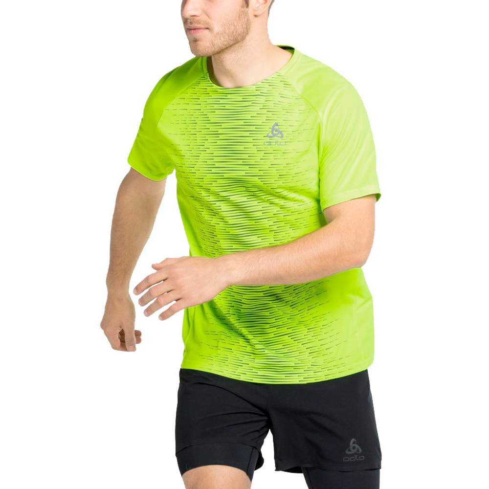 Eco friendly Odlo shirt korte mouw Essential Crew Print voor de heren is comfortabel en ademend. Dit loopshirt is naadloos en om ervoor te zorgen dat je fris blijft ruiken, is het materiaal behandeld met 100% biologische ZeroScent-technologie die een duurzame barrièrelaag vormt om te voorkomen dat geurveroorzakende bacteriën de vezels binnendringen.