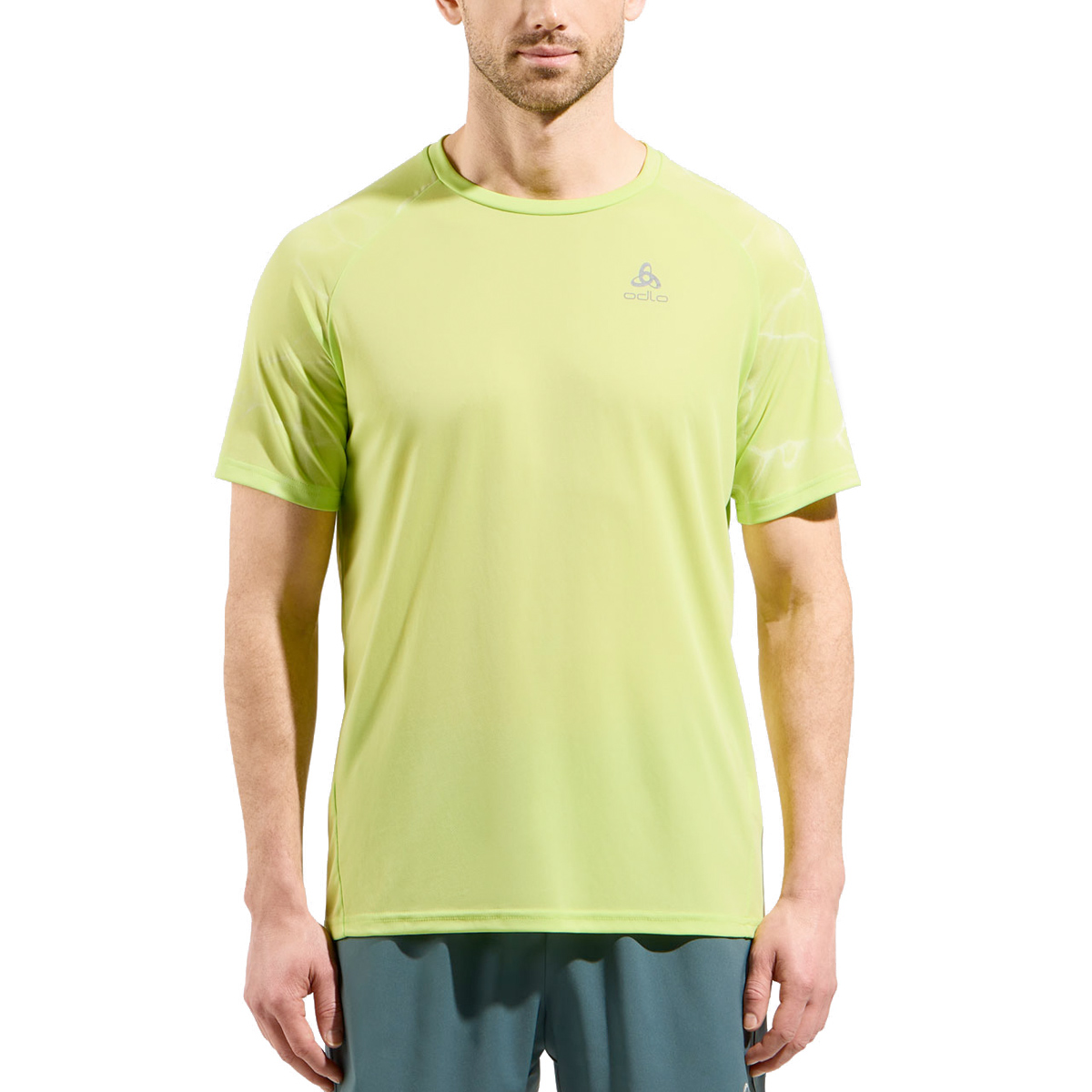 Deze Odlo shirt korte mouw Essential Print shrap green heren is gemaakt van zeer ademend, lichtgewicht en sneldrogend gerecycled polyester. Dit technische dames hardloopshirt van Odlo, ontworpen voor hardlopen in warm weer, is voorzien van reflecterende details en ZeroScent - een op bio gebaseerde antimicrobiële behandeling die geuren op afstand houdt, zelfs na herhaalde runs. Het zal al snel een vaste waarde worden in je trainingsgarderobe.