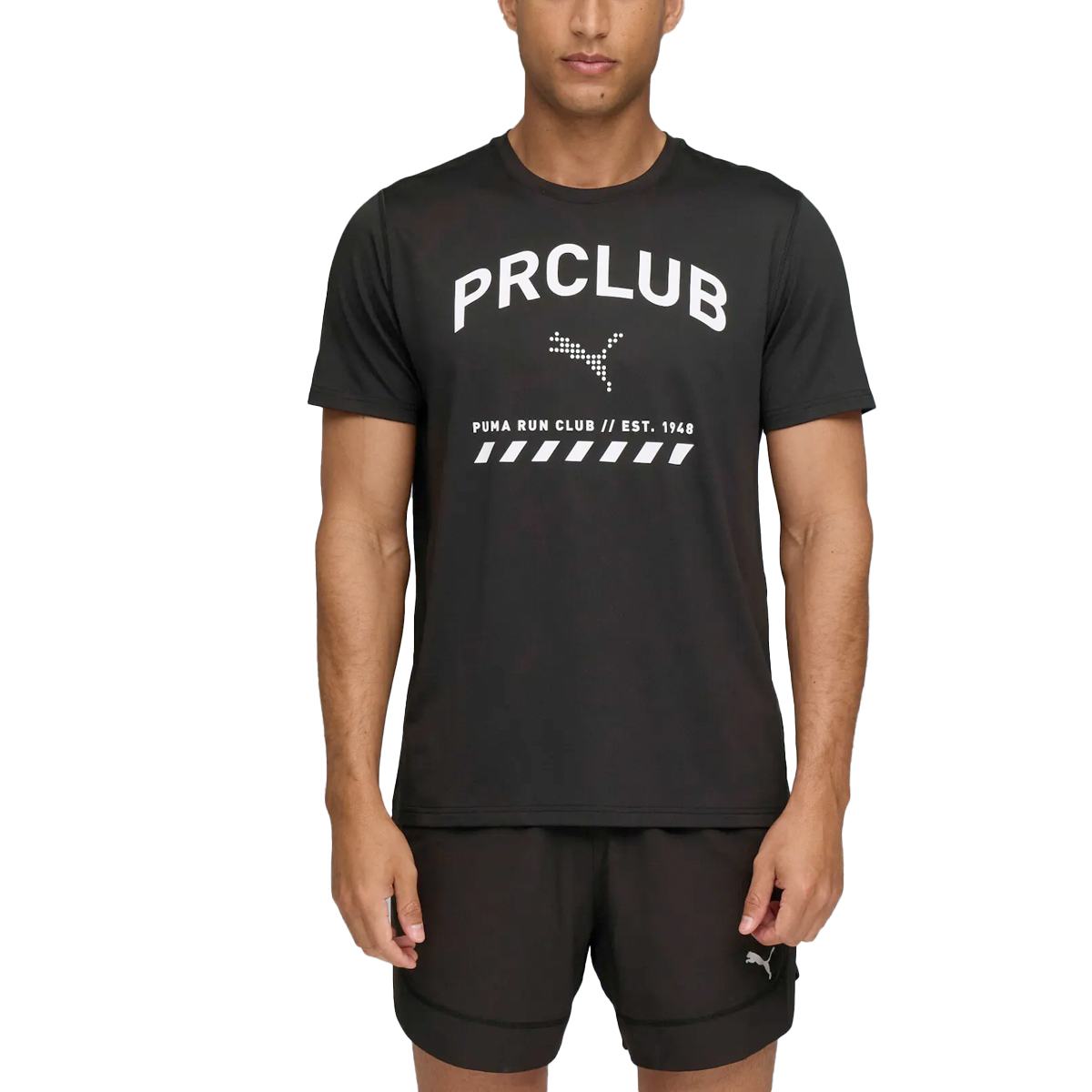 PUMA shirt korte mouw Run Club Graphic heren (Black) houdt je droog en in focus dankzij de dryCELL-technologie. Een duurzaam multisport shirt van ademende mesh stof die zowel voor hardlopen als fitness, of een combi van beide gedragen kan worden zoals bv bij HYROX.