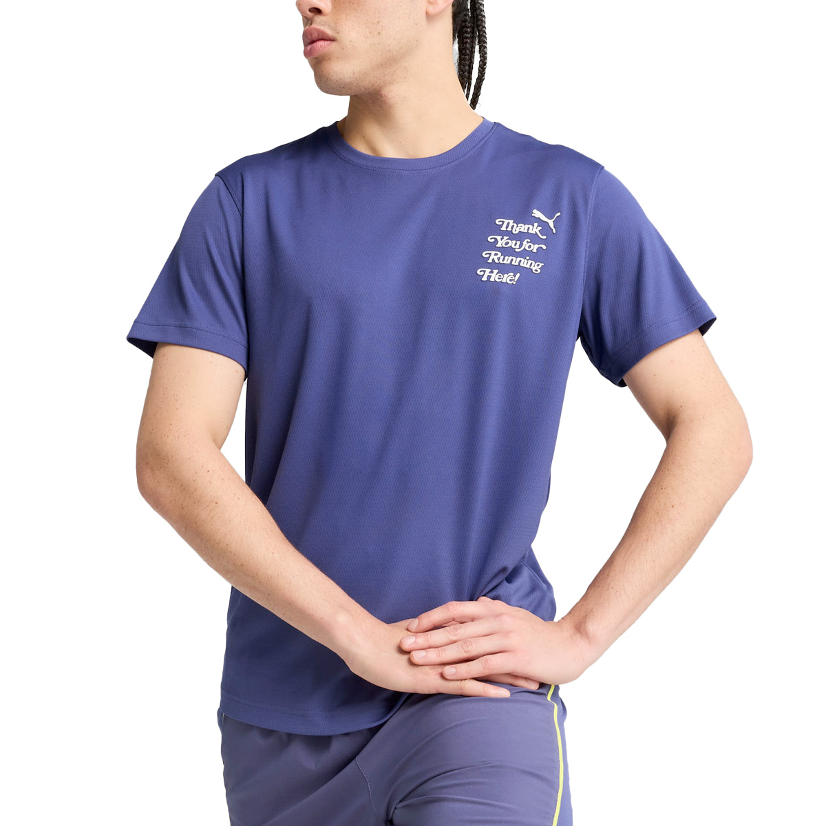 Dit Puma shirt korte mouw Slogan blue crystal voor heren is een lichtgewicht hardloopshirt gemaakt voor de dagelijkse hardloper, met dryCELL-technologie om je droog en gefocust te houden. Ervaar ultiem comfort en stijl bij elke stap. Ideaal voor iedereen die graag in beweging blijft.