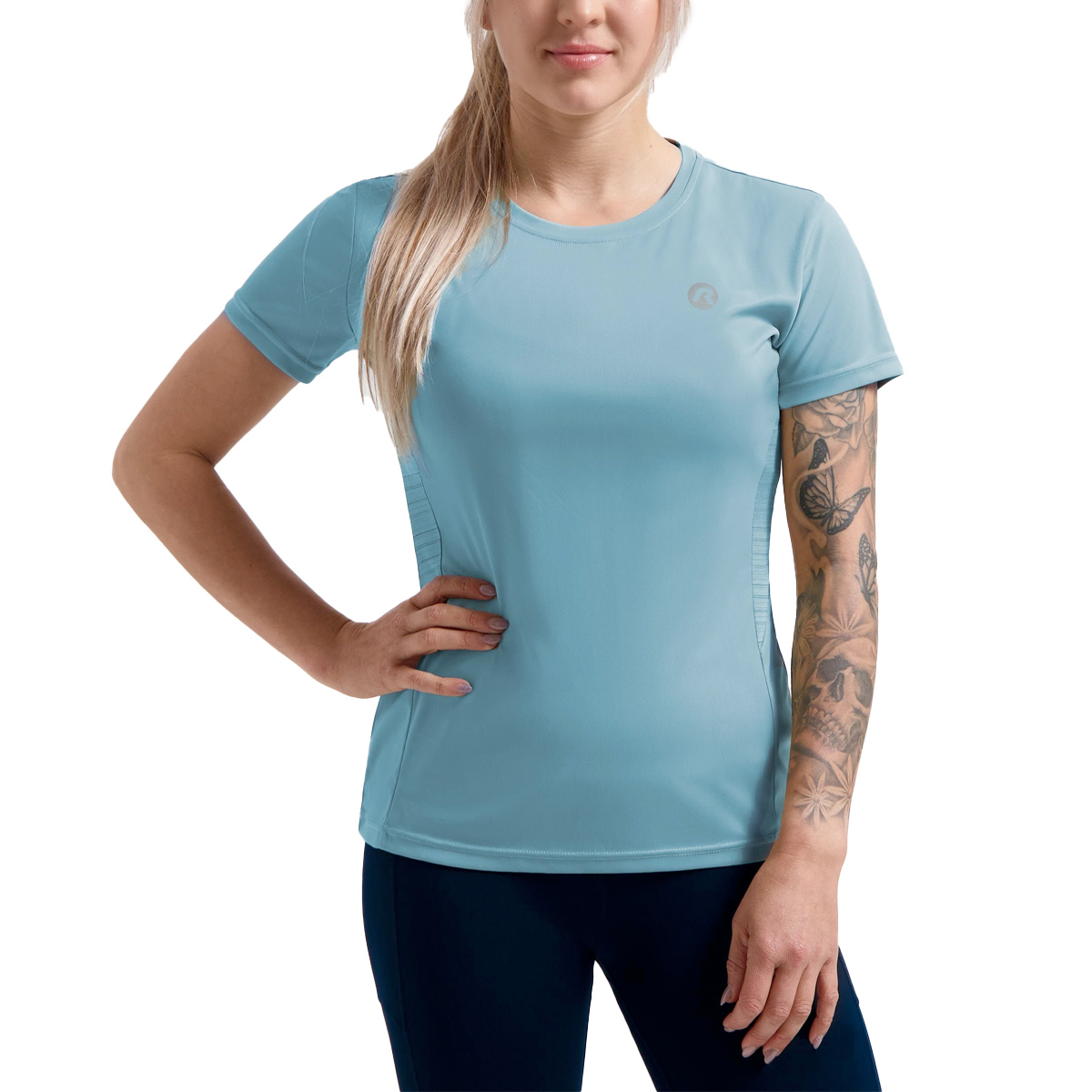 Rogelli shirt korte mouw Core (Light Blue) dames is gemaakt van een comfortabele stof, met een ademende panelen op de rug wat zorgt voor goede ventilatie. De reflecterende details zorgen ervoor dat je goed zichtbaar blijft in het donker.