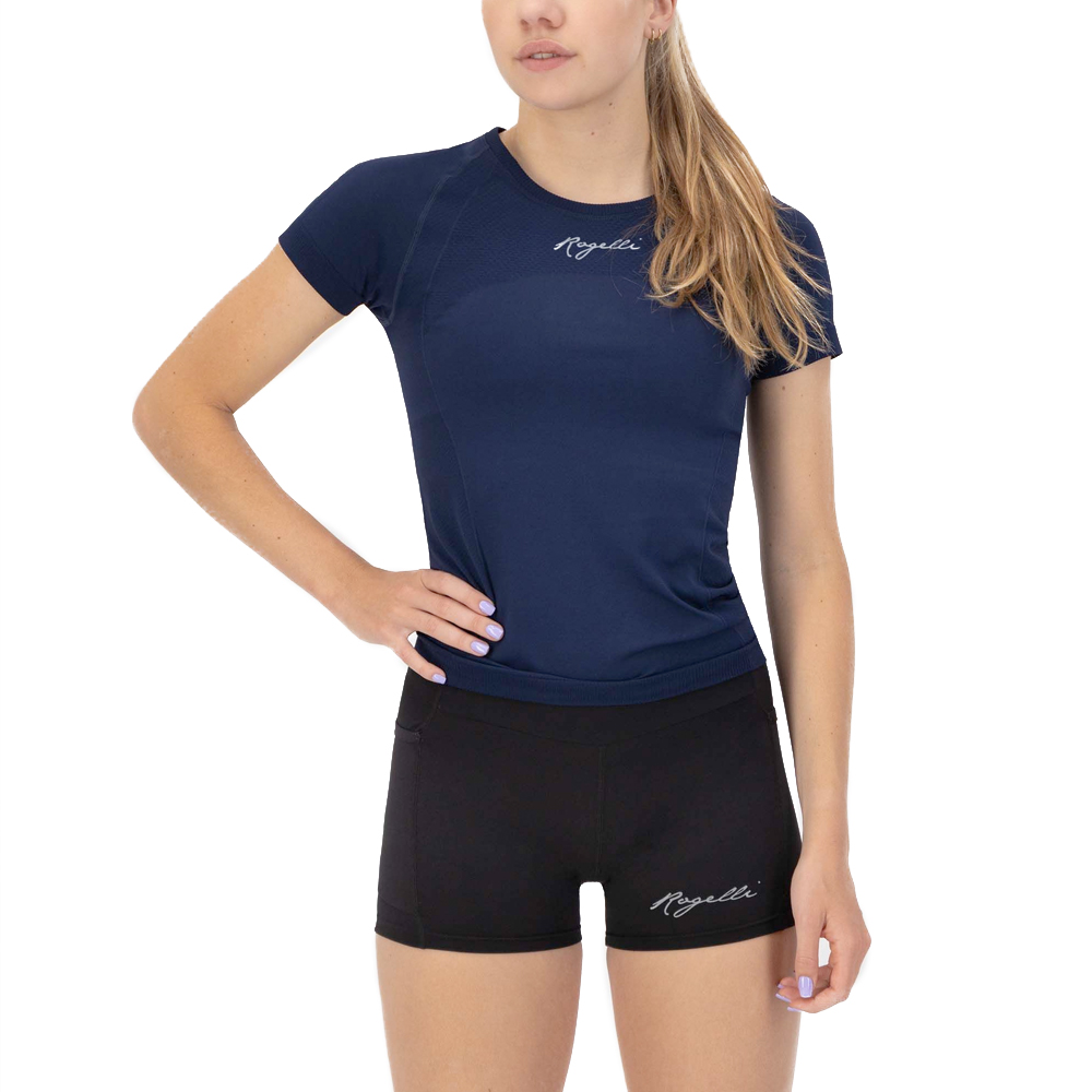 Dit Rogelli shirt korte mouw Essential blue voor dames is gemaakt van een comfortabele en ademende stof, en is volledig naadloos wat zorgt voor nog meer draagcomfort. Door de reflecterende details ben je goed zichtbaar in het donker.
