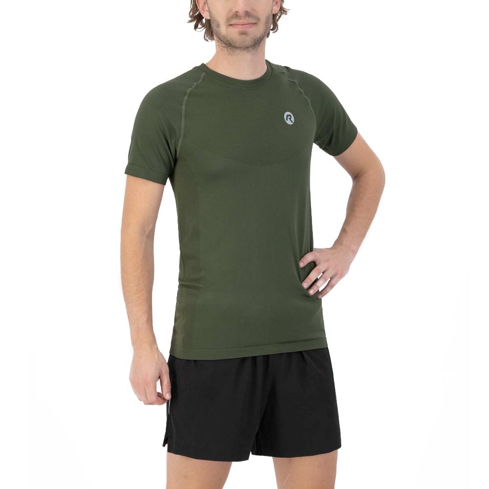 Dit Rogelli shirt korte mouw Essential army green voor heren is gemaakt van een comfortabele en ademende stof, en is volledig naadloos wat zorgt voor nog meer draagcomfort. Door de reflecterende details ben je goed zichtbaar in het donker.