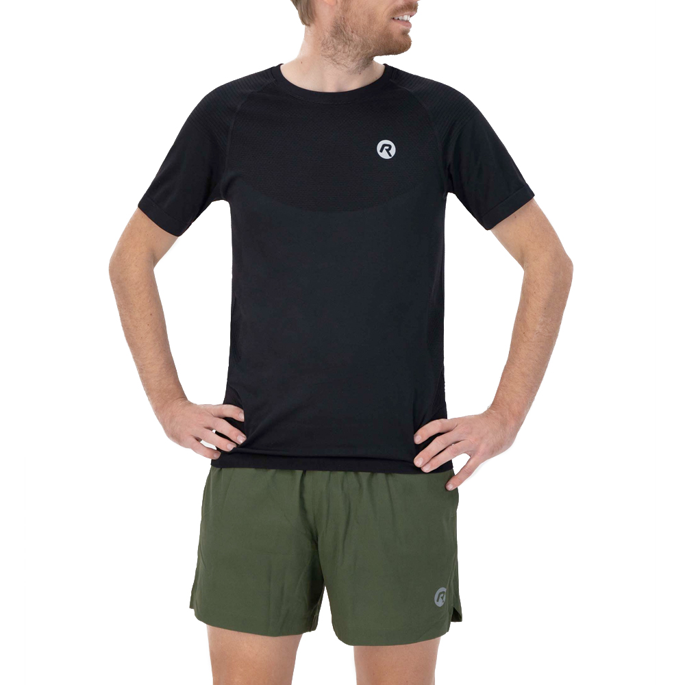 Dit Rogelli shirt korte mouw Essential black voor heren is gemaakt van een comfortabele en ademende stof, en is volledig naadloos wat zorgt voor nog meer draagcomfort. Door de reflecterende details ben je goed zichtbaar in het donker.