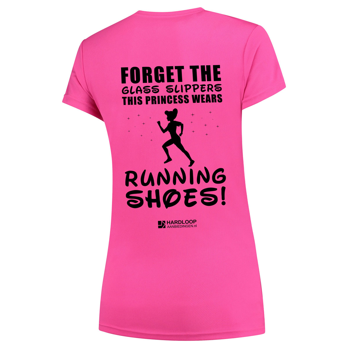 Sportshirt roze met tekst forget the glass slippers this princess wears runningshoes