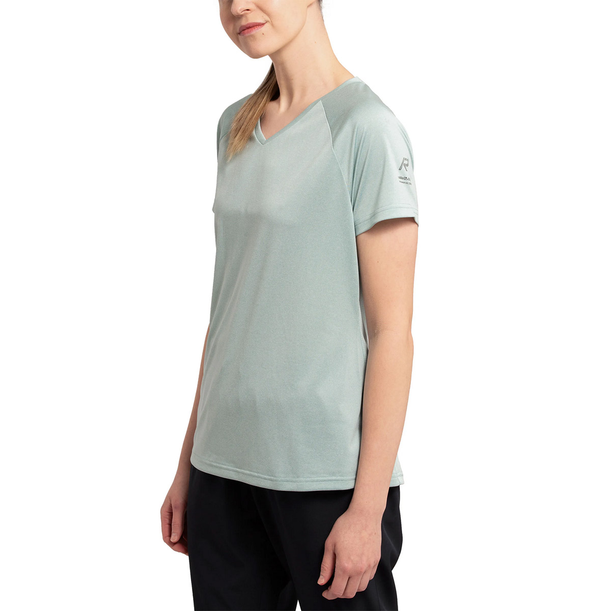 Dit ruimvallende Rukka shirt korte mouw Magnula mint voor dames met v-hals is gemaakt van een dunne, lichtgewicht polyester stof die zorgt voor een goede vochtafvoer. Het 4-way stretch materiaal rekt in alle richtingen uit, wat maximale bewegingsvrijheid biedt. Het shirt heeft een klein sleutelzakje met rits aan de zijkant.