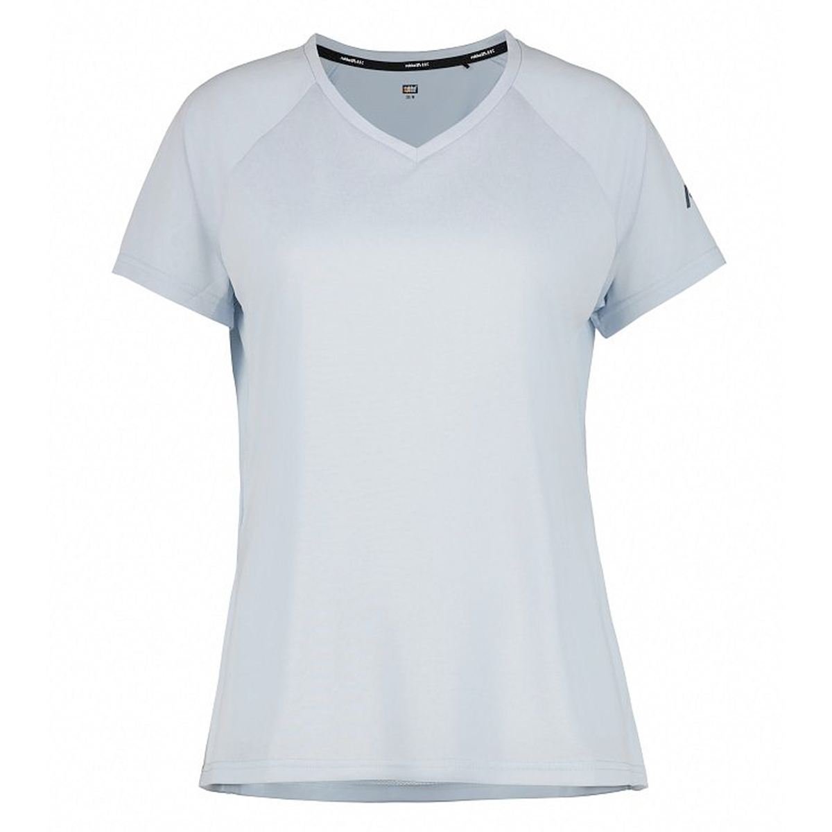 Rukka shirt korte mouw Magnula (Light Blue) voor dames met v-hals is gemaakt van lichtgewichte ademende stof met mesh op de achterzijde wat zorgt voor een goede ventilatie. Het 4-way stretch materiaal rekt in alle richtingen uit, wat maximale bewegingsvrijheid biedt. Het shirt heeft een klein sleutelzakje met rits aan de zijkant.