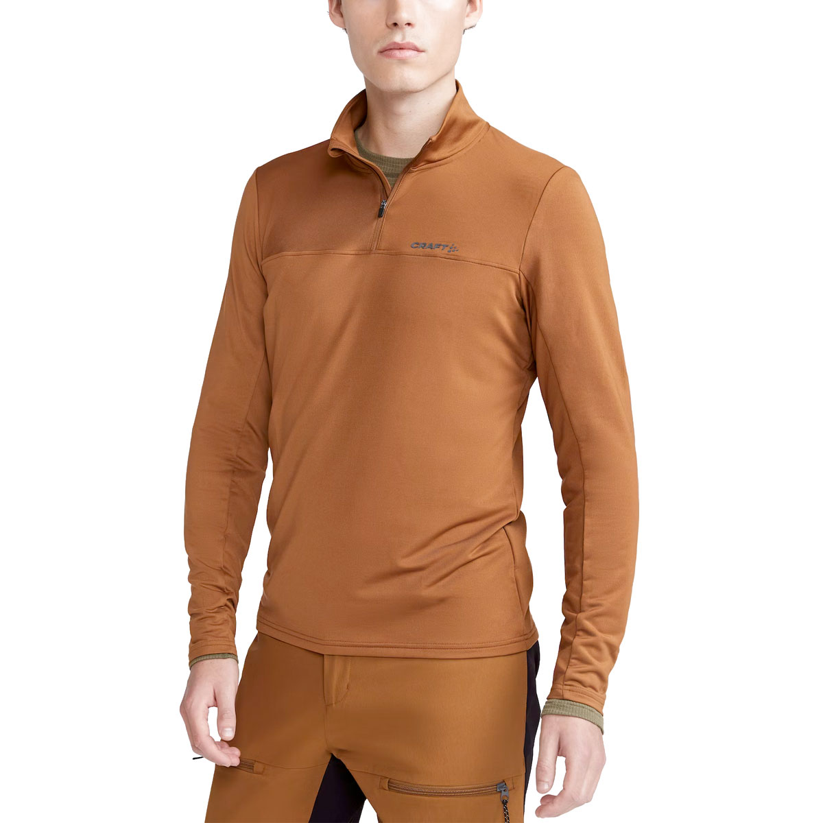 Craft shirt lange mouw Core Gain Midlayer roots voor de heren heeft een zacht aanvoelende stof met geborstelde binnenkant om warm te blijven. Perfect als buitenste laag voor frisse dagen en onder een hardloopjas bij winterse dagen.