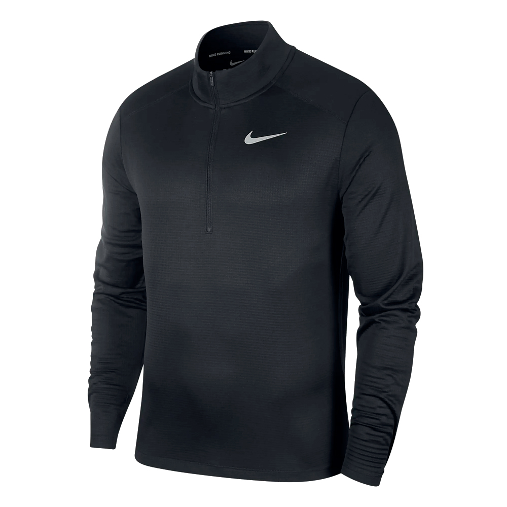 Dit Nike shirt lange mouw 1/2 zip Pacer black voor heren is gemaakt van zacht, zweetafvoerend materiaal met Dri-Fit technologie waardoor je droog en comfortabel blijft. Het shirt is voorzien van een halflange rits, en mouwen met duimgaten zodat je handen warm blijven. Door de reflecterende details ben je goed zichtbaar in het donker.
