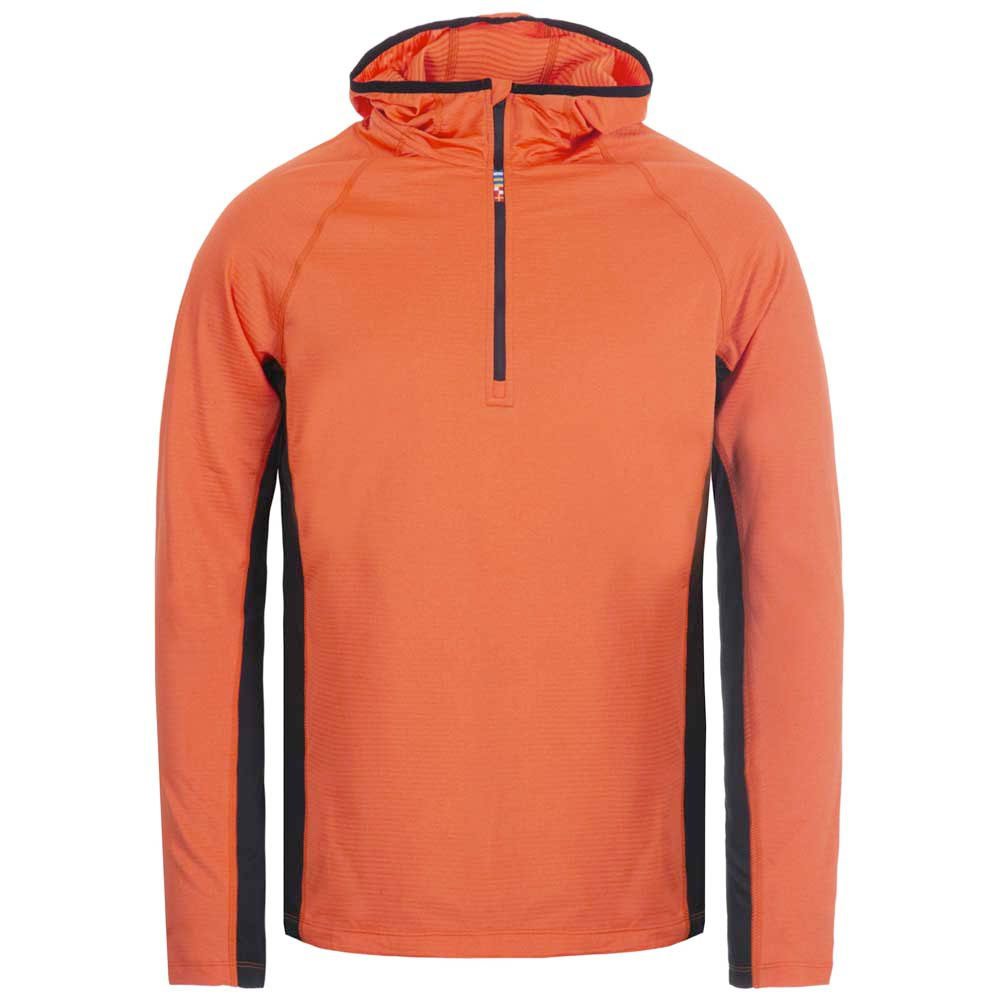 Dit Rukka shirt lange mouw hoodie 1/2 zip Myllyaho orange voor heren is gemaakt van licht gevoerde zachte stof. De gemêleerde stof voelt comfortabel en zacht aan. Met de duimsgaten in de mouw van dit warme hardloopshirt houdt je je handen lekker warm tijdens de koude dagen.