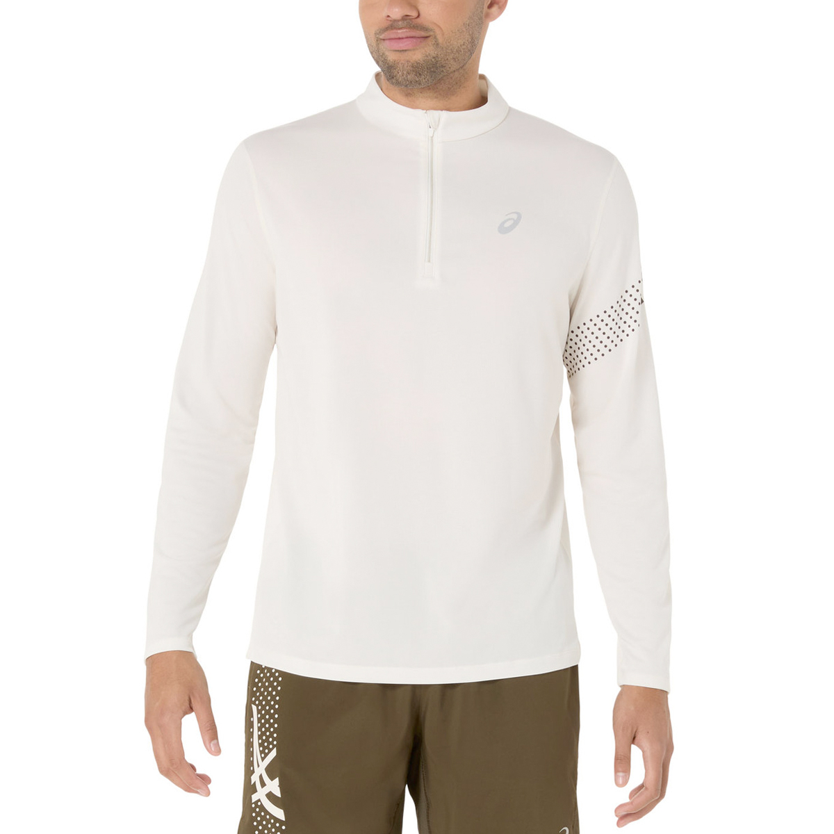 Dit Asics shirt lange mouw 1/2 zip Icon (Cream) voor de heren heeft een halve rits die extra comfort biedt tijdens het hardlopen. Het shirt bevat reflecterende elementen die je extra zichtbaarheid geven in het donker. Het vochtregulerende materiaal voert zweet effectief af en geeft een comfortabel en droog gevoel tijdens met hardlopen.