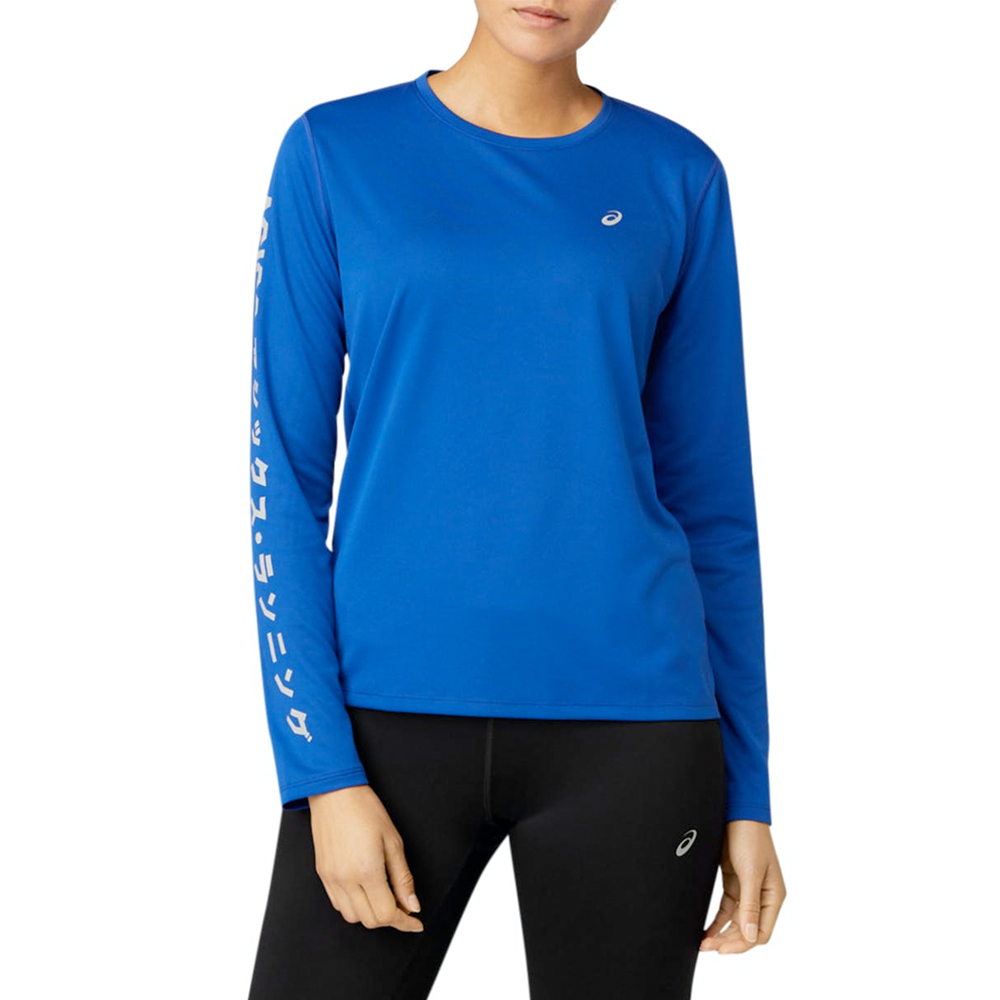 Asics shirt lange mouw Katana monaco blue dames is gemaakt van lichte sneldrogende stoffen die je droog en comfortabel houdt. Een ideaal hardloopshirt dames voor het lopen in najaar of voorjaar tot zo'n 15 graden celsius.
