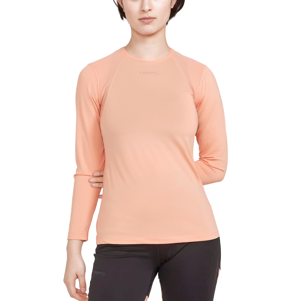 Craft lange mouw Adv Essence glow voor dames heeft een getailleerde pasvorm voor optimale bewegingsvrijheid. Dit Craft hardloopshirt is ademend en houdt je cool tijdens de warme dagen. Dames t-shirt is duurzaam en gemaakt van gerecycled polyester.
