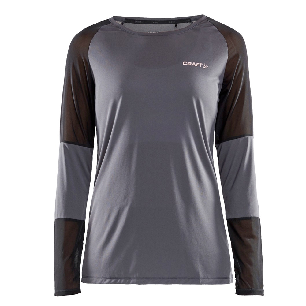 Dit Craft shirt lange mouw Eaze asphalt grijs/zwart voor dames is een superzacht en lichtgewicht loop T-shirt met lange doorschijnende mouwen. De afgeronde onderkant zorgt voor een mooie en fijne pasvorm.