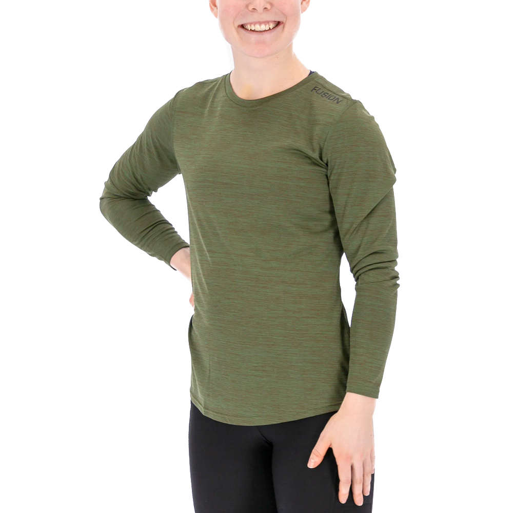 Dit Fusion shirt lange mouw C3 green melange voor dames is gemaakt van een zachte stof, waardoor je lang comfortabel blijft bij elke weersomstandigheid. Het shirt is voorzien van een klein reflecterend detail op de achterkant van het shirt.