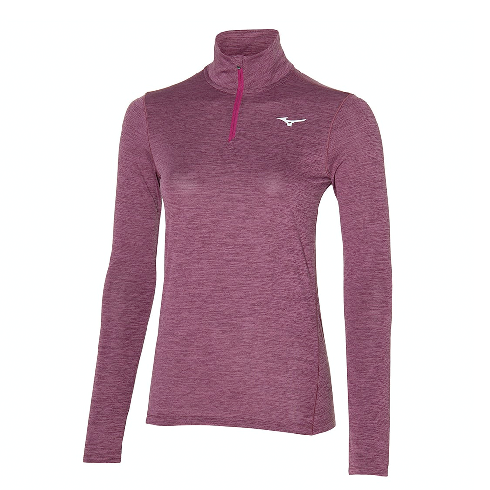 Dit Mizuno shirt lange mouw 1/2 zip Impulse Core grape wine voor dames is gemaakt van zachte stof met hoog ademend vermogen.