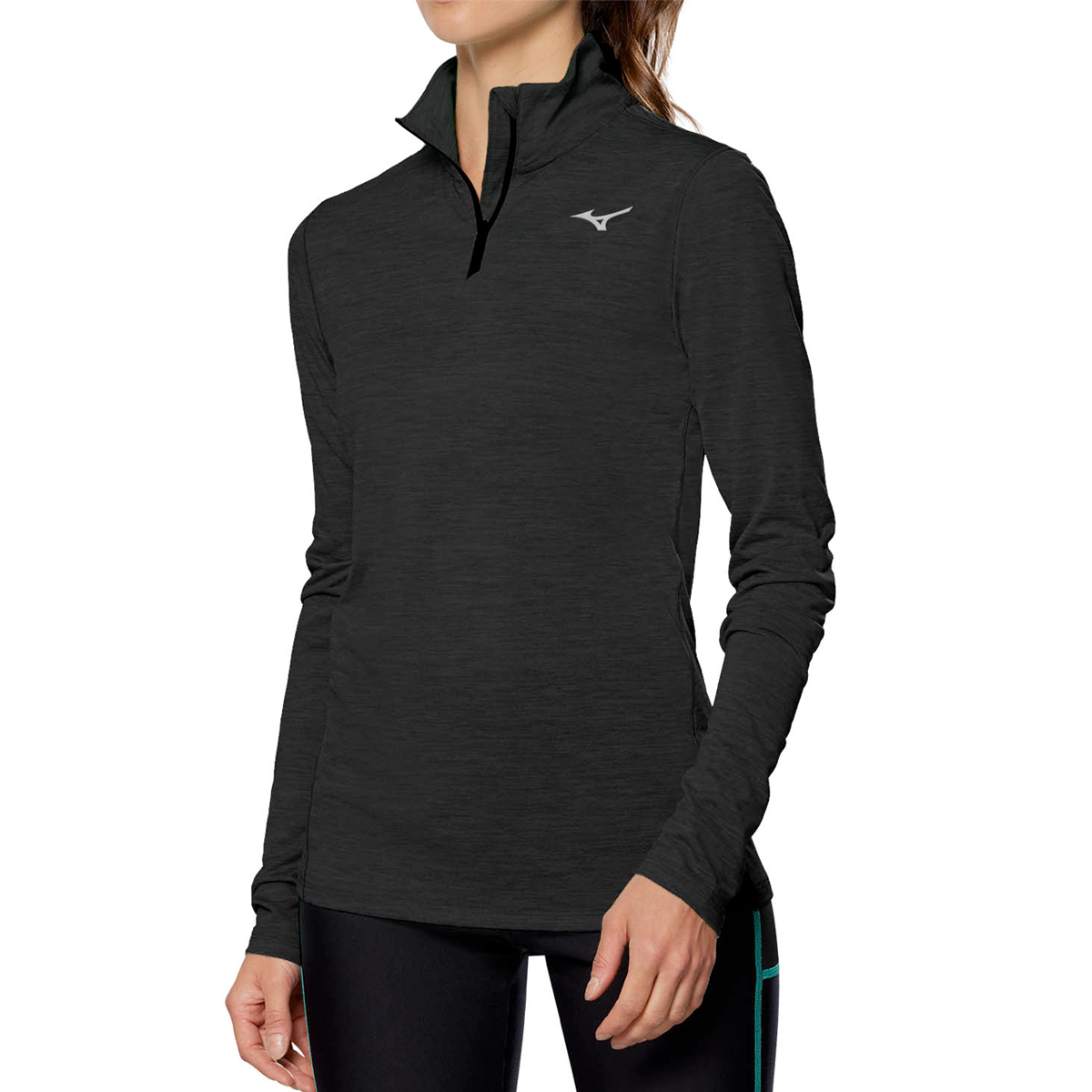 Dit Mizuno shirt lange mouw 1/2 zip Impulse Core black dames is gemaakt van een zachte dunne functionele stof met hoog ademend vermogen.