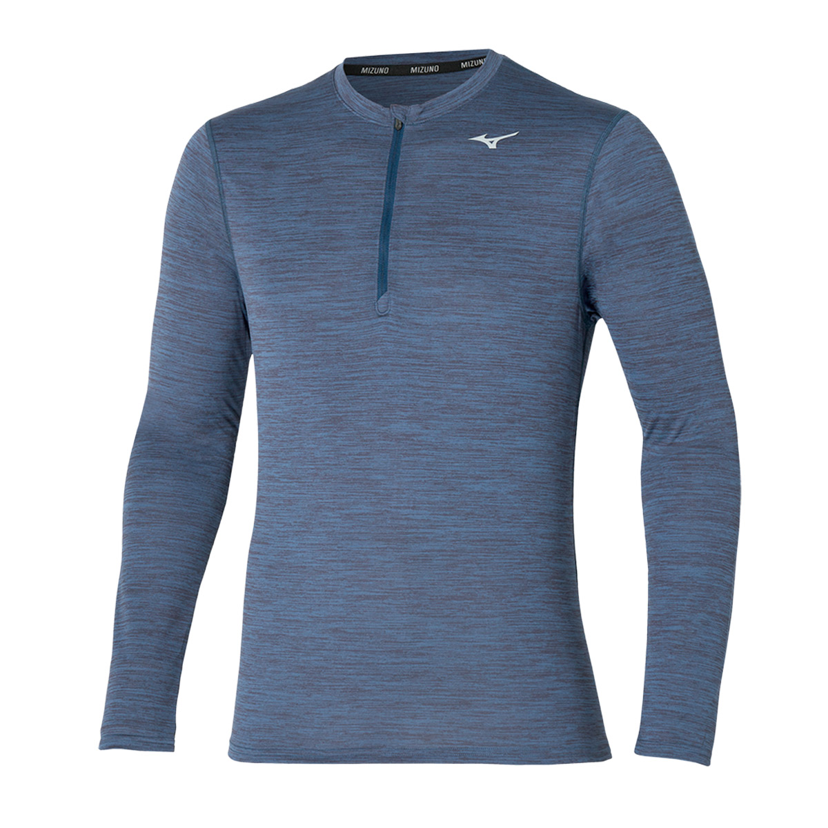 Dit Mizuno shirt lange mouw 1/2 zip Impulse Core estate blue heren is gemaakt van een zachte dunne functionele stof met hoog ademend vermogen.